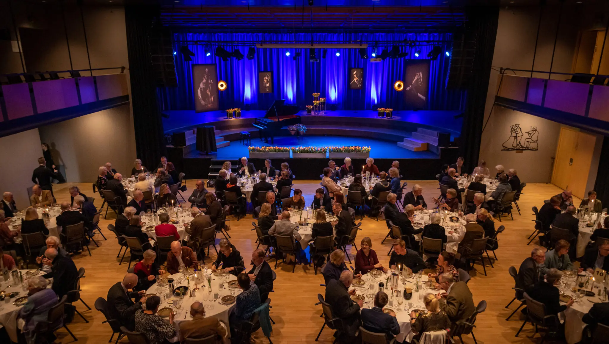 Salen fylles med tulipaner og rigges om mellom konsertene. I Falkbergetsalen vil du oppleve alt fra runde bord, flatt gulv og amfi.